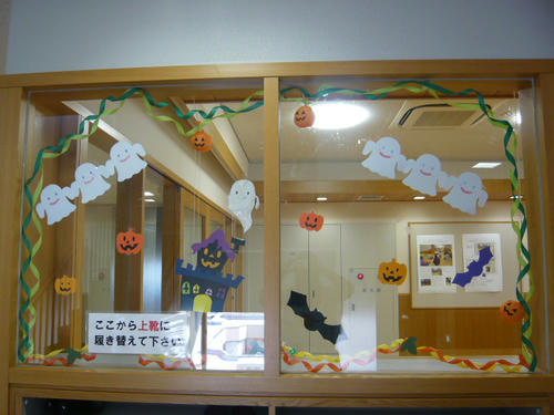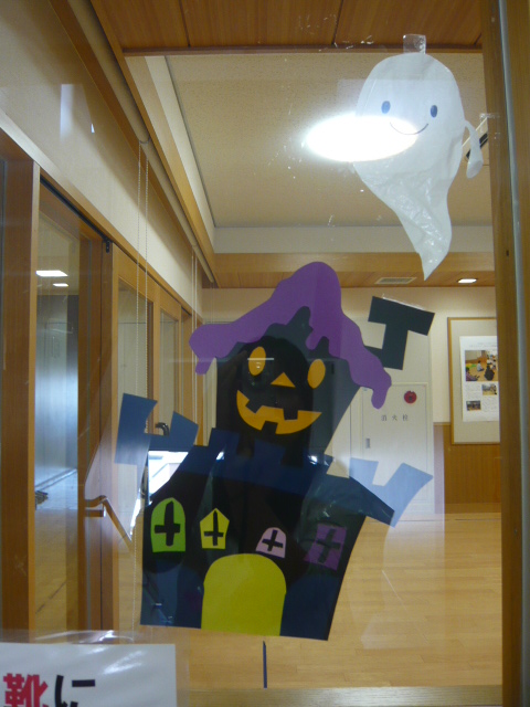 こんな感じ。お化けの家とこうもりとかぼちゃをさがるが作りました。