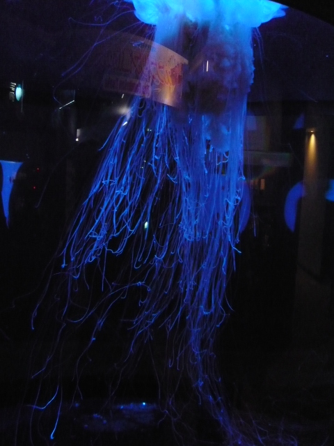 でかい水槽に鮫やらカメやらがすいすい泳いでたり
