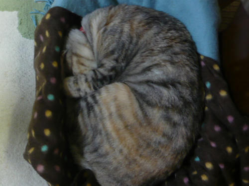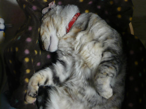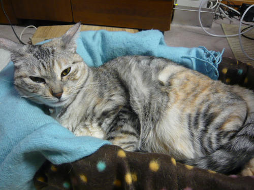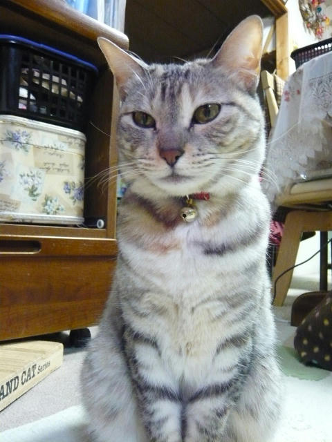 (みーちゃんは毛づくろい中だ。こちらを見ない)